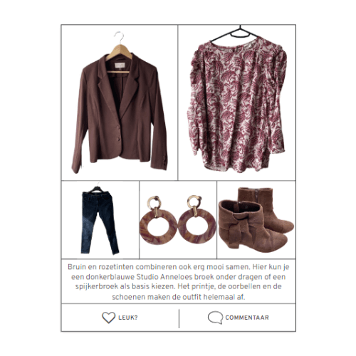 - Je ziet alle outfits in één oogopslag, mét mijn persoonlijke tips erbij, waardoor je ook nog eens op een frisse manier naar je kleding gaat kijken.