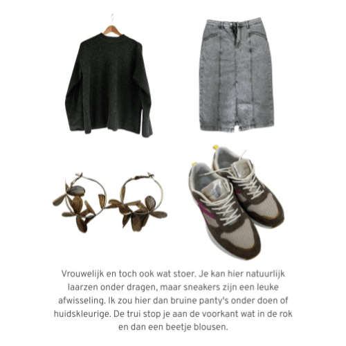 - Onder iedere outfit vermeld ik persoonlijke stylingtips, zodat je precies weet waarom deze combinaties voor je werken en jij je outfits direct met vertrouwen kunt dragen.