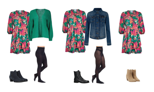 Laatst ook weer tijdens een garderobecheck. De vrouw bij wie ik was, had een leuke mouwloze jurk in de kast die ze één keer naar een bruiloft had gedragen. We hebben er een aantal nieuwe setjes mee gemaakt zodat ze hem nu het hele jaar door kan dragen, puur door hem op verschillende manieren te combineren. Zo leuk!