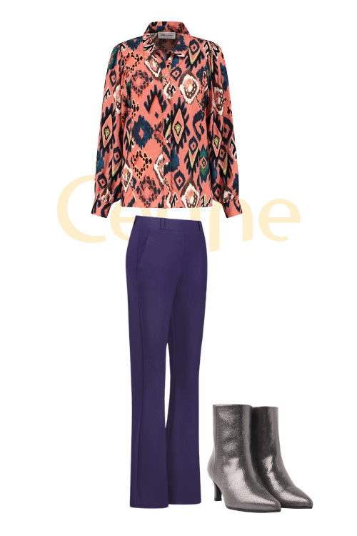 Een van de makkelijkste manieren om kleuren met elkaar te combineren is een printje als uitgangspunt. Je kunt alle kleuren gebruiken die in het printje voorkomen en die hoeven zéker niet precies hetzelfde te zijn. De bijbehorende kleurfamilies mogen ook meedoen.